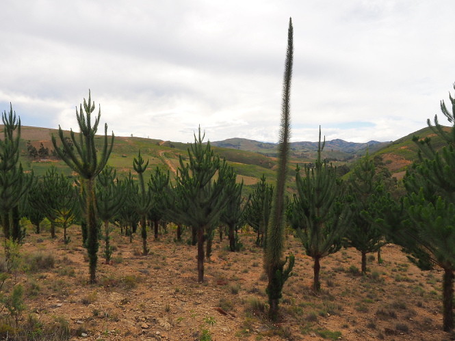 Hurá. Konečně za sulkama. Serpentiny v červených skalách, na svazích akácie, pepřovník bromélie, játrofa a cereusy.