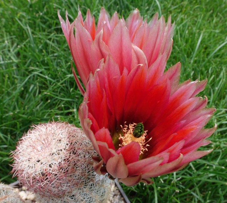 Echinocereus pectinatus subsp. rutowiorum DU 28, General Trias, Chihuahua, přechodová forma, žluté i červené květy. Semena tohoto druhu byla v prodeji vloni a letos, žel – chybně byla označena nesprávným polním číslem DU 27!