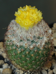 Posílám obrázek miniaturní kytičky Parodia gibbulosa (v překladu hrbolkový – vztahuje se k epidermis rostliny). Rostlinku jsem získal před dvěma lety od švýcarské firmy HA-KA-FLOR, jako malou odnož, nyní kvete ve velikosti 35 mm.
