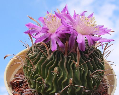 Poprvé jsem "laui" viděl při dubnové návštěvě sbírky Helmuta Nagla v roce 2004. Od ostatních echinofosulokaktů se na první pohled lišily diskovitým růstem, trny odvrácenými od temene a neobvykle velkými květy.