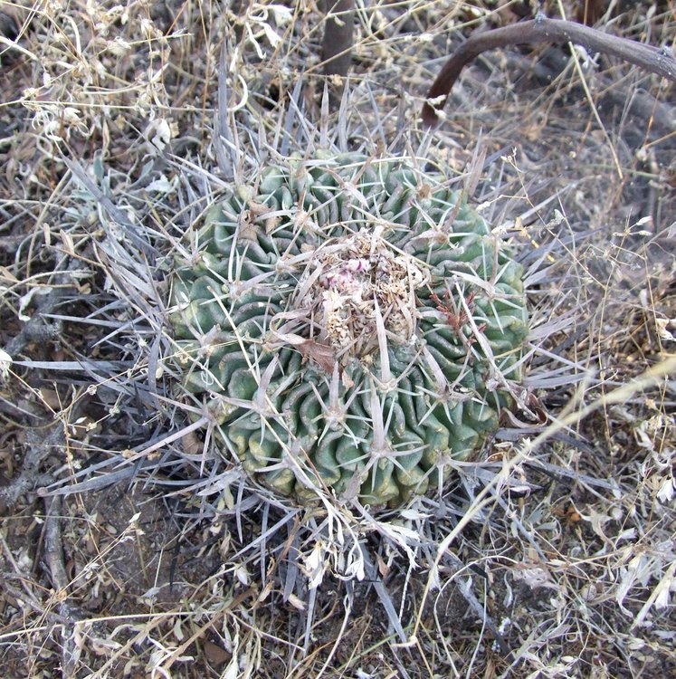 Nebylo jich mnoho, po rychlém prozkoumání blízkého okolí jsme zaznamenali asi 10 vskutku parádních exemplářů krásné formy Echinofossulocactus dichroacanthus. Svým vzhledem a hrozivě trčícími středovými trny připomínaly známého a úžasného dichroakanta od EL Vergel, které je ale vzdušnou čarou vzdáleno cca 150 km. Musím se omluvit za zhoršenou kvalitu snímků. Díky nabitému programu byl budíček o trochu dřív než jindy a fotilo se při východu slunce těsně před sedmou hodinou.