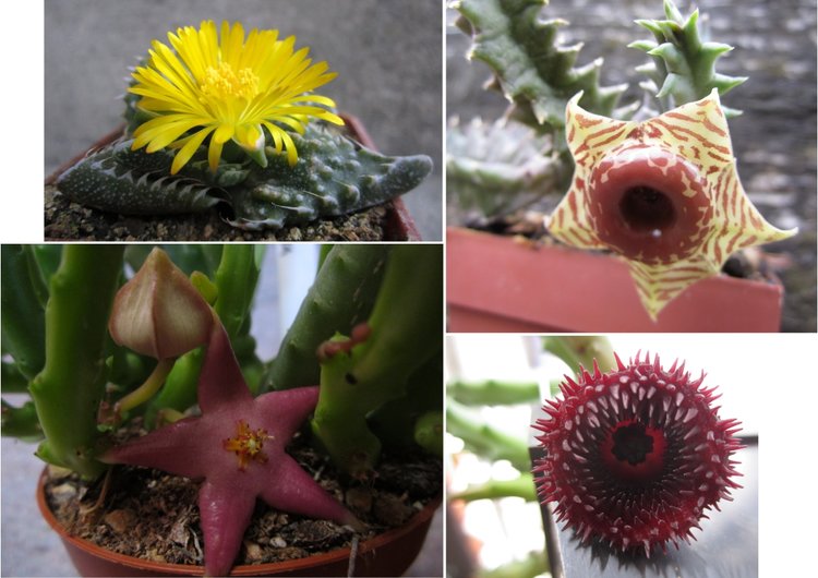 Některé sukulenty na zimovišti dokvétají. Celkem pravidelně mezi ně patří smrdutky (Stapelia) nebo rod Faucaria.