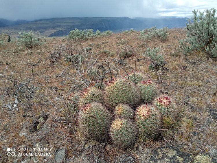 Ušel jsem ještě dobrých pět set metrů a pořád nic. Až najednou, něco růžového! A kopeček trnů! A bylo to. Prvních pět kusů nedaleko od sebe. Nádhera! Drobné zelenošedé rostliny s tenkými černými trny a růžovými květy. Tělo v průměru do deseti centimetrů na šířku i výšku. Kulovitého tvaru a často spálené do černa od jihozápadu (koncem léta 2021 sužoval celé západní pobřeží USA příliv horkého vzduchu a teploty ve stínu šplhaly hodně přes 40 °C více než dva týdny). Přesto byly rostliny velmi vitální, napité a tlačily nové trny a květy.