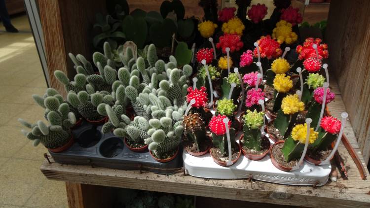 Tyhle rostliny jsou obchodním zbožím a pro mě, jako kaktusáře, nemají to pravé pěstitelské kouzlo. Při svých cestách se sice občas zastavím v nějaké větší pěstírně a někdy si dokonce něco vyberu. O tom ale nechci psát, i když téma, o kterém píšu, se může zdát podobné. Předem bych chtěl zdůraznit, že článek není reklamním pojednáním, které by mělo přilákat zákazníky. Spíše chci ukázat na rozsáhlou nabídku kaktusů a sukulentů ve velkém zahradním centru v Německu, které jsem nedávno navštívil. Překvapilo mě, jak je nabídka aranžována, aby procházející zákazníky zaujala. Rozsah nabídky pro příležitostné pěstitele byl skutečně impozantní. Nevím, zda se mi na fotografiích podařilo zachytit vše zajímavé. Mnoho rostlin lze koupit i u nás, ale nabídka v ČR bývá spíše omezená. Co je ale pro mě na takové rozsáhlé nabídce zajímavé? Když jsem se dostal k prodejní části kaktusů, sukulentů a jiných exotických rostlin, byl jsem skutečně zaskočený. Viděl jsem v životě mnoho obchodů, kde prodávali kaktusy, mnoho pěstíren, ale tohle bylo něco jiného. V tu chvíli mě napadlo, že tohle může být pro ty, kteří vnitřně cítí obdiv k exotické flóře, impuls něco si koupit, pěstovat a získat informace, jak postupovat po koupi. Bylo z čeho vybírat. Velké, spíše dekorativní rostliny, zde byly v rovnováze s nabídkou menších, cenově zajímavějších kousků. Ač některé z nabízených kaktusů byly viditelně dominantní, nabídka jiných sukulentů jako aloe, sanseviery, euphorbie, crassuly nebo i masožravky svou precizní vizáží, bez drobných vad na kráse, mě udivovala. Ta péče o nabízené zboží byla viditelná. Podle mě všechno působilo harmonicky a vyváženě. Nemohu srovnávat naše obdobná specializovaná zahradní centra, protože je neznám. Ve srovnání s prodejem kaktusů a sukulentů např. v OBI, Baumax nebo Hornbach byla úroveň prodeje určitě o třídu vyšší. Nabídka u nás bývá většinou chudší. Viditelný rozdíl byl především v kvalitě rostlin. Žádné poškození, skvrny apod. Domnívám se, že výběru rostlin k prodeji byla věnována velká pozornost. Výběr rostlin určitě vyžadoval zkušenosti a znalost nabízených rostlin. Čas, který jsem prohlídce rostlin věnoval, byl mnohem delší, než jsem při vstupu do zahradního centra zamýšlel. Když jsem odcházel, napadlo mě, že tady umí kaktusy a sukulenty (a nejen je) prodávat.