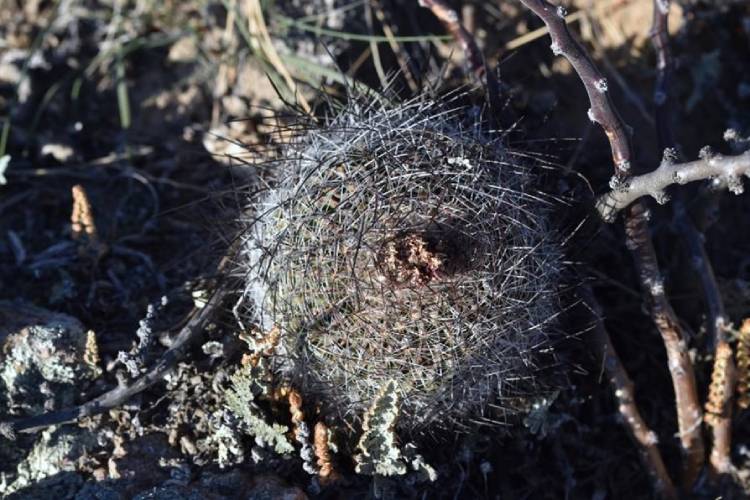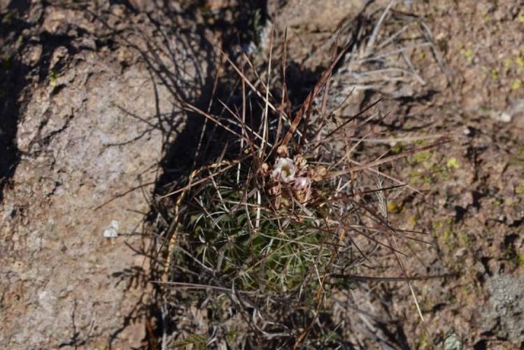 Doporučenou oblast jsem navštívil vícekrát, ale neměl jsem tam na podobné rostliny štěstí. Jinde na okraji pohoří Sierra de San Miguelito ano, ale zde ne. Našel jsem buď typické populace E. phyllacanthus, nebo E. dichroacanthus s dlouhými trny. Kýžené rostliny se mi podařilo najít právě letos v únoru (obr. 11).