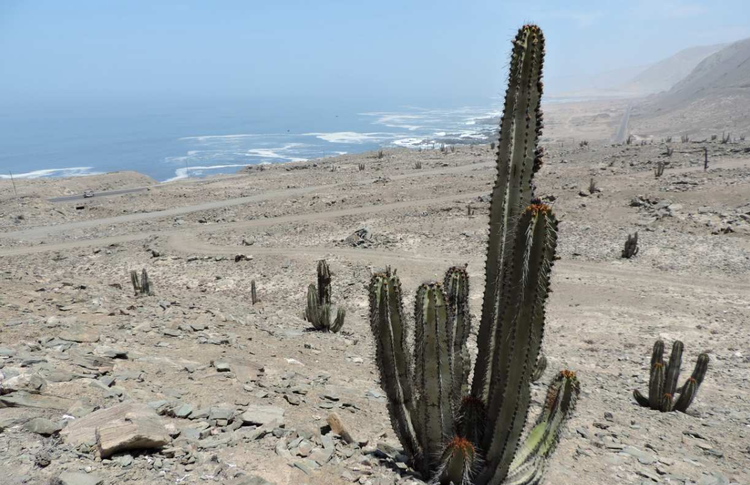 vpravo: trnitý plod Neoraimondia gigantea, Rio Santa, Mirador, 753 m, KL15-055